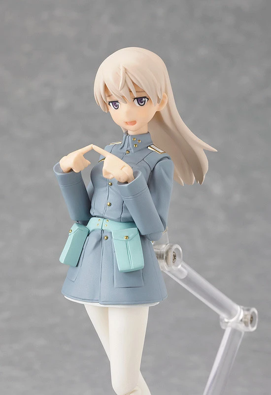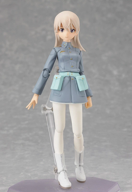 Strike Witches is the fan-favorite series following the adventures of a group of girls with high magical potential who wear “Striker Units” on their legs and do battle in the air. Eila Ilmatar Juutilainen is the highest scoring Suomus Ace and is seen here in her usual gray military jacket and with her full Striker Unit attached to her legs. She also comes with three interchangeable expressions––standard, glaring, and embarrassed––as well as alternate fringe parts with animal ears, a tail, and her MG42 machine gun! Now you can have hours of fun at home recreating all those fantastic magical battles with this highly poseable figma!