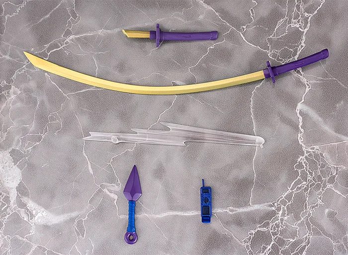 He comes equipped with his signature enchanted sword Beppin, which can be displayed either sheathed or drawn, and an additional part to display the sword after it is broken by Ninja Slayer is also included. Other optional parts include a kunai dart with throwing effect parts, a mobile IRC device, and interchangeable hand parts so you can recreate his aisatsu and karate poses.