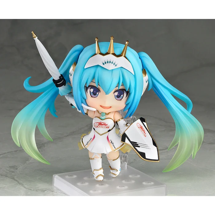 The official character of the Hatsune Miku GT Project Racing Miku is back again in Nendoroid form, this time in her 2015 ver. outfit! The Nendoroid is based on the illustration by Taiki, a design which gives Racing Miku a knightly appearance, ready to charge into first place! Optional parts include a race queen’s parasol, as well as a Nendoroid-sized car that Miku can actually ride inside!