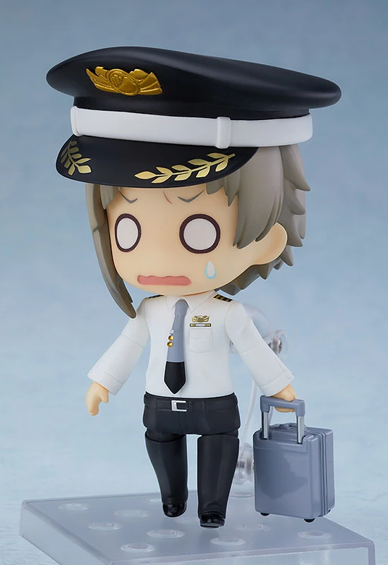 In this adorable, articulated chibi form he measures 3.9” and comes with several accessories including two face plates (standard and flustered), removable pilot’s hat, a smaller pilot’s hat for posing with, a carry-on suitcase, and interchangeable arm parts (including a thumbs up!) for making a variety of poses possible! Take note of the streak of color in his hair, detailed execution of the golden emblem on his pilot’s hat and T-shirt, and clean paintwork of his pretty purple and yellow eyes! Let him make a smooth landing into your collection!