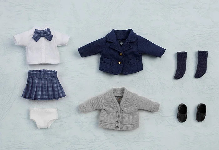Introducing a Nendoroid Doll outfit set of a preppy schoolgirl uniform! From Good Smile Company and available in two color options, the set includes a real fabric outfit consisting of a blazer, cardigan, shirt with ribbon, pleated skirt, underwear, long socks, and loafers with magnetic soles. Enjoy creating fun new scenes and situations with your favorite characters!