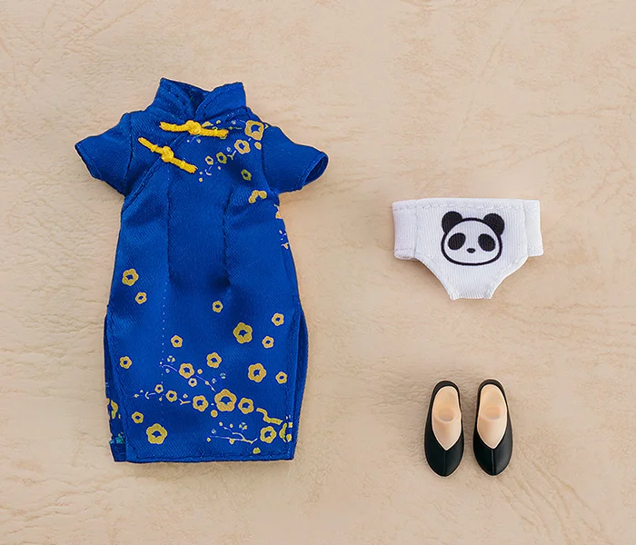 Give your Nendoroid Doll an elegant, traditional makeover with this Chinese-style outfit set from Good Smile Company! Included is a real fabric outfit consisting of a cheongsam-style dress available in either red or blue that features a gold floral design and gold knot button details, panda-themed underwear, and shoes with magnetic soles.
