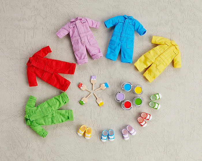 Let your Nendoroid Doll’s creativity flow with these colorful coveralls from Good Smile Company in cooperation with Sawada Koubou as well as costume and pattern planning by Mieko Akimoto. Available in bright colors, they will pop as part of your figure display! Display them next to you while you create as inspiration and motivation! Each set includes a coveralls as well as a matching paint can, paint brush, and pair of sneakers with magnets in their soles. Choose your favorite color or collect them all to make a cute display of multiple Nendoroid Dolls as if they are painting a large mural together!