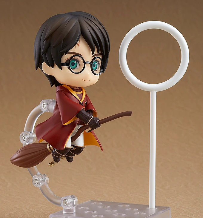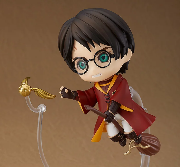 From Good Smile Company with sculpting by Shichibee and nozomu naitoh comes this Nendoroid of Harry Potter in his Gryffindor Quidditch uniform from the internationally popular Harry Potter series. He comes with a Golden Snitch, goal hoop, Nimbus 2000, and two face plates so you can pose him smiling next to his broom (obviously after winning!) or, using the articulated clear stand, soaring on his broom with a serious expression while about to catch the Snitch. Features high-quality paintwork including his big bright chibi eyes and Gryffindor emblem on his coat. A must-have Nendoroid for Harry Potter fans!