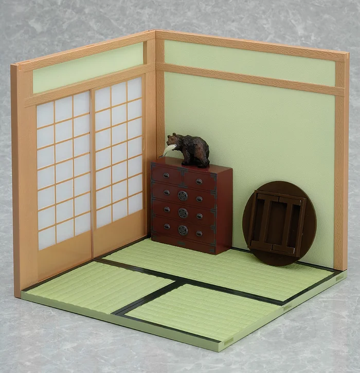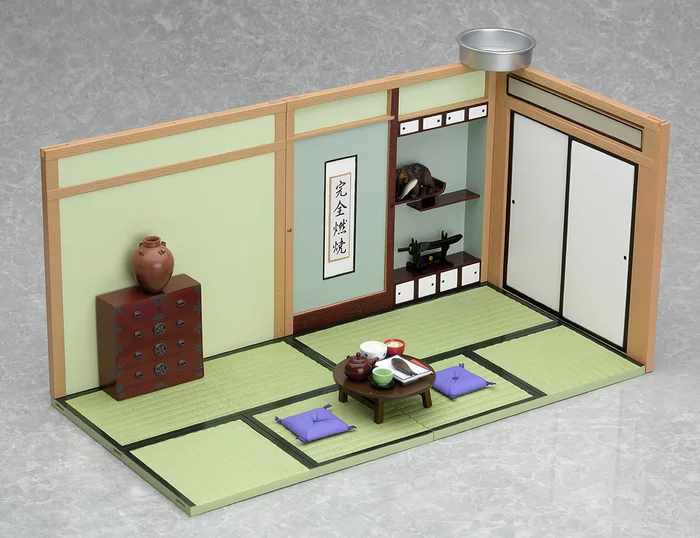 Back by popular demand! Get creative with your figure display and give your Nendoroids a place to relax with this playset based on a traditional Japanese-style room! The set includes a sliding door that can open and close, a detailed tatami floor, dining table, chest of drawers, cushion, rice and soup bowls, chopsticks, a bear sculpture, and a plate of grilled fish to create a cozy atmosphere. The playset can also be combined with the Japanese Life Set B to form one large room for even more fun display possibilities. You can even combine it with any other Nendoroid Playset to create your own custom scene!