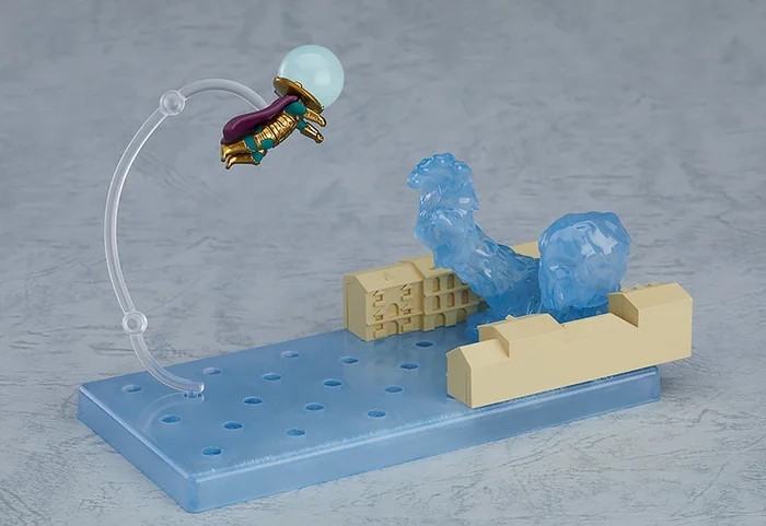 Spidey-kun’s adorable figure is accompanied with a plethora of accessories and optional parts – including an unmasked head, a smartphone, new webbing shapes, webbed wings, and a drone! The blue base was especially made to include a miniature version of Venice and the Water Elemental he fights, along with a miniature version of a flying Mysterio!